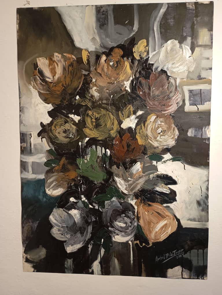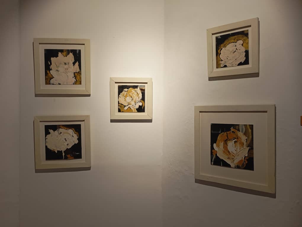 Son las flores las que se repiten y pasan por las manos del artista como salidas de una máquina que pinta las flores, y al mismo tiempo, revisa conceptos y deja texturas en rosas, camelias, crisantemos y claveles, señala el catálogo de la muestra.