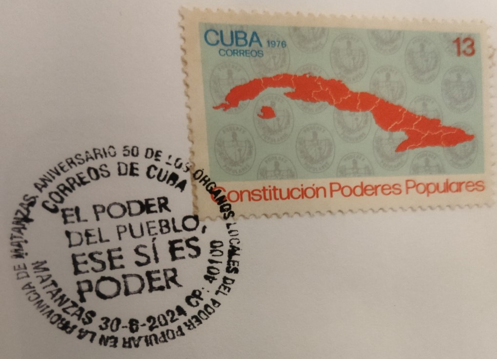 El sello seleccionado tuvo una tirada de 720 000 unidades y valor de venta al público de 13 centavos de pesos cubanos. El caché del sobre se refiere a la celebración por los 50 años de la instauración de la experiencia de los Órganos Locales del Poder Popular en la provincia de Matanzas y resalta la memorable frase pronunciada por el líder histórico de la Revolución Cubana Fidel Castro Ruz: «El poder del pueblo, ese sí es poder».