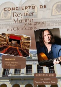 El destacado guitarrista cubano, Reynier Mariño y su grupo presentarán el concierto titulado Regreso, este 25 de julio, a las nueve de la noche en la Sala Principal del Teatro Tomás Terry, de Cienfuegos, como parte de la etapa estival Modo Verano.