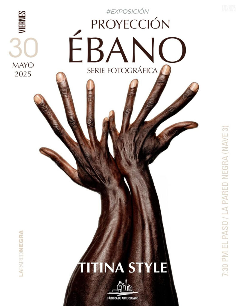 Otra exposición que será inaugurada es Ébano, de Titina Style, una serie centrada en las manos de un hombre negro, imágenes que invitan a detenerse, a contemplar lo esencial… y a reconocer, en la forma de una mano, el alma entera y sus secretos. A través de diferentes gestos, las instantáneas revelan la fuerza, la sensibilidad y la expresividad contenidas en esta parte del cuerpo.