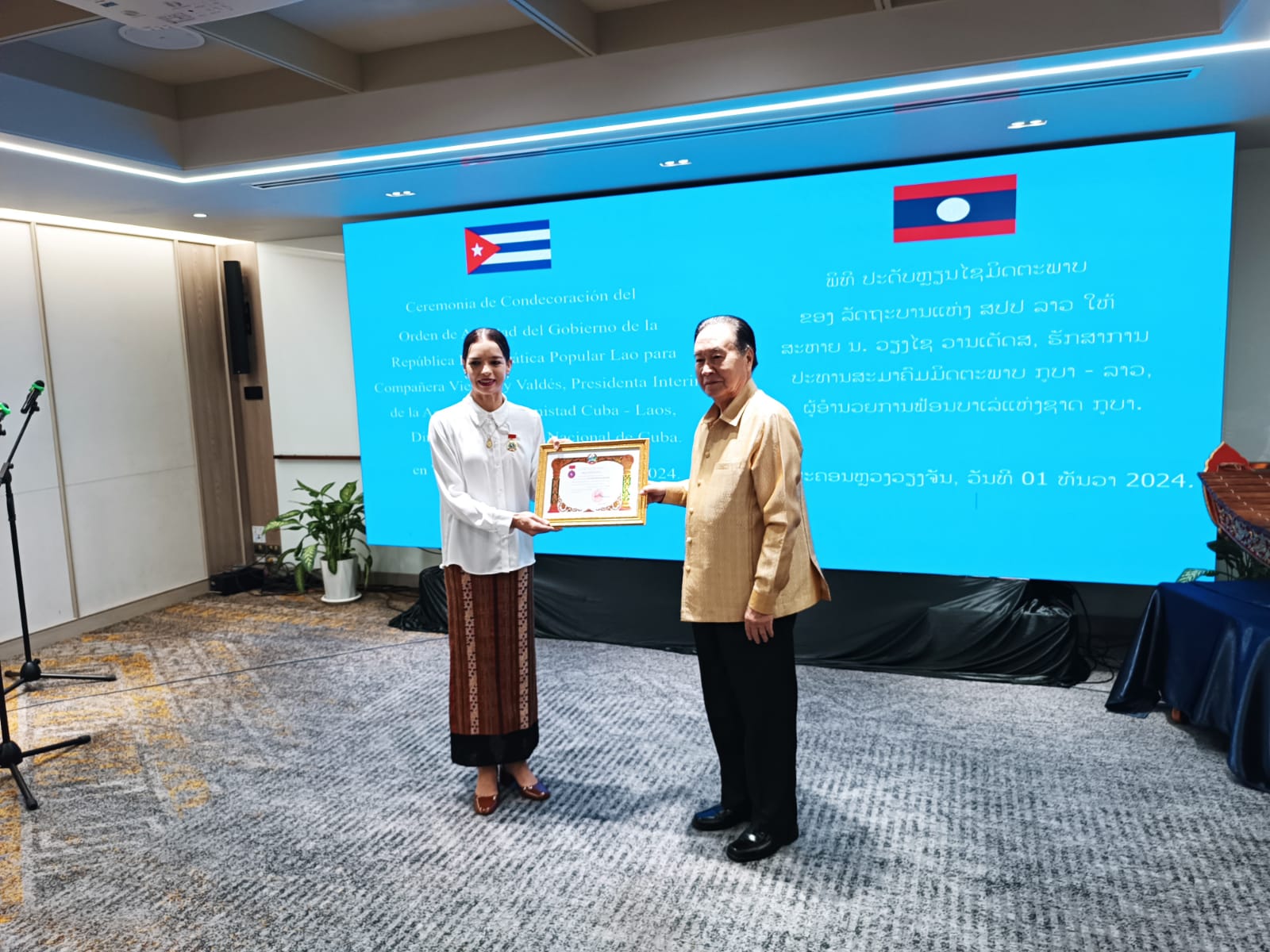 Viengsay Valdés Receives the Medal of Friendship in Laos
