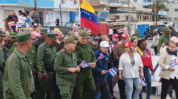 Miguel Díaz-Canel Bermúdez, Primer Secretario del Comité Central del Partido Comunista de Cuba (CCPCC) y Presidente de la República, encabeza hoy, en La Habana, la marcha del pueblo en honor a los 32 combatientes caídos durante la agresión estadounidense contra Venezuela.