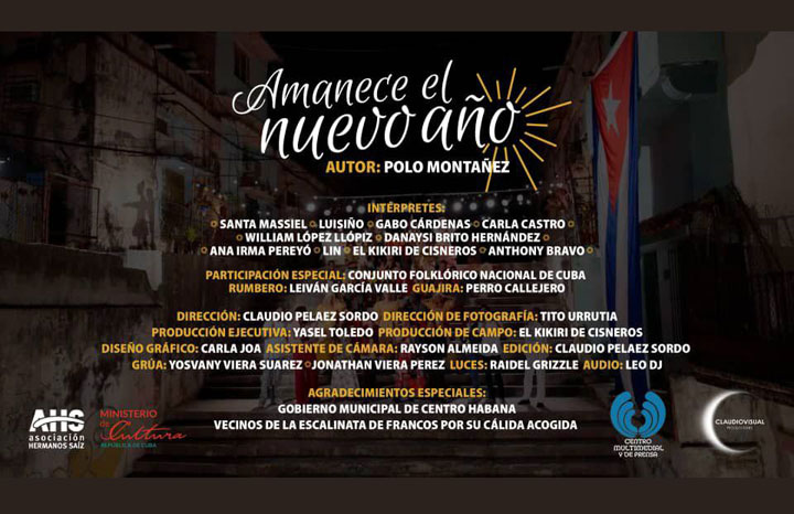 Amanece el nuevo año, tema de Polo Montañez, es el nombre del videoclip que estrena la Asociación Hermanos Saíz (AHS) este 31 de diciembre por todos los canales de la televisión cubana y en el canal de Youtube de la AHS.