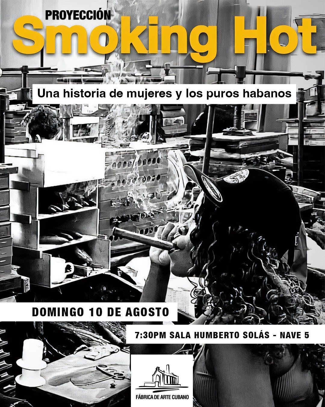 El espacio dedicado al cine proyectará en la noche dominical el documental Smoking hot: una historia de mujeres y los puros habanos, de la realizadora canadiense Andrea Malloni, explora la destreza de las hábiles torcedoras en La Habana, el trabajo de las féminas tabacaleras en el campo y la fábrica, el uso histórico de imágenes femeninas en la venta de puros, la experticia de las sommeliers y el surgimiento de una nueva imagen empoderada de la mujer, donde ese producto se convierte en un símbolo de seguridad en sí misma recuperada e igualdad.