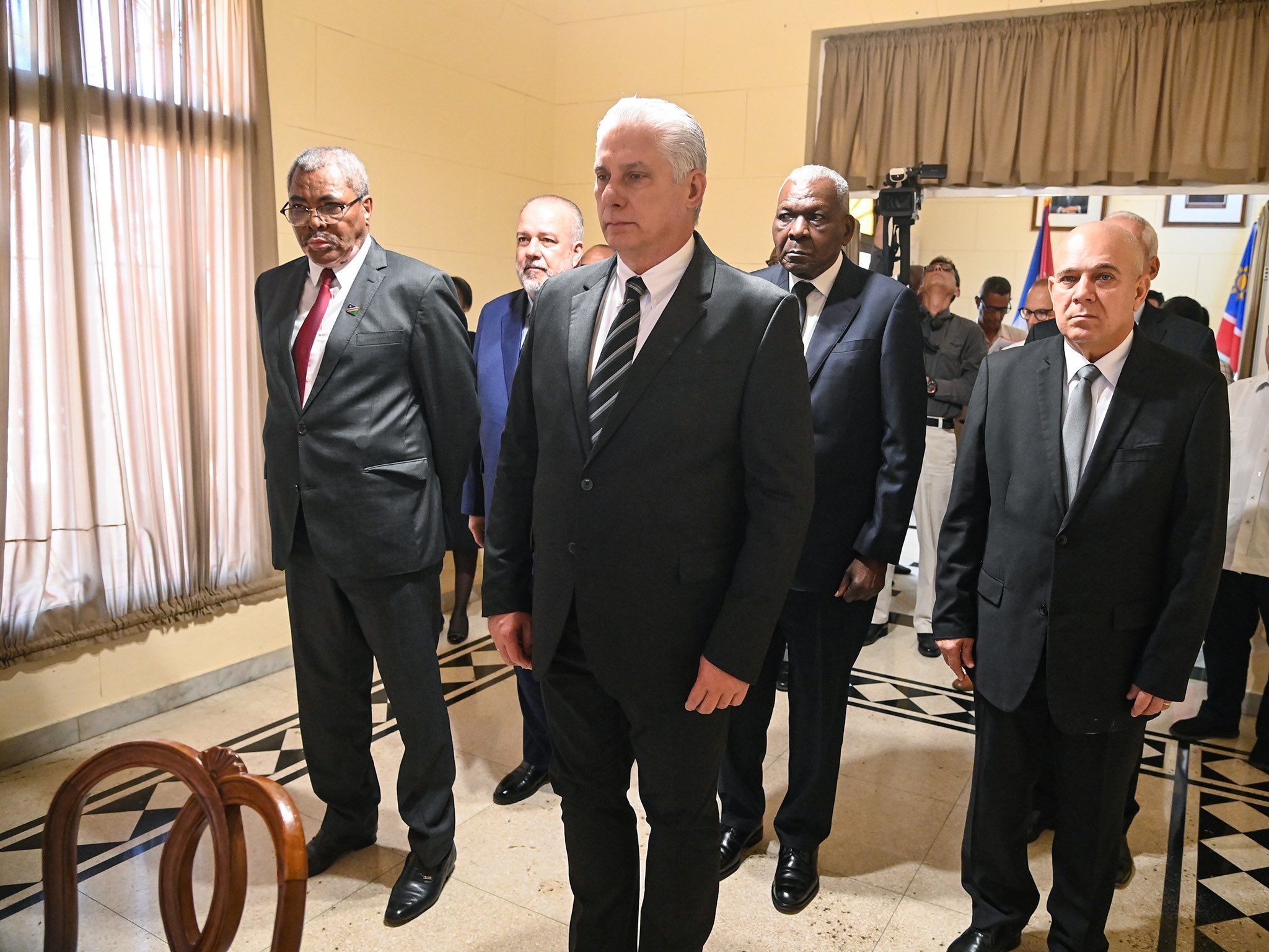 Con profundo pesar recibimos la triste noticia del fallecimiento de uno de los mejores amigos de la Revolución Cubana, el excelentísimo señor doctor Sam Nujoma, escribió Miguel Díaz-Canel Bermúdez, Primer Secretario del Comité Central del Partido Comunista de Cuba y Presidente de la República, en el Libro de Condolencias abierto en la embajada de Namibia, en La Habana.