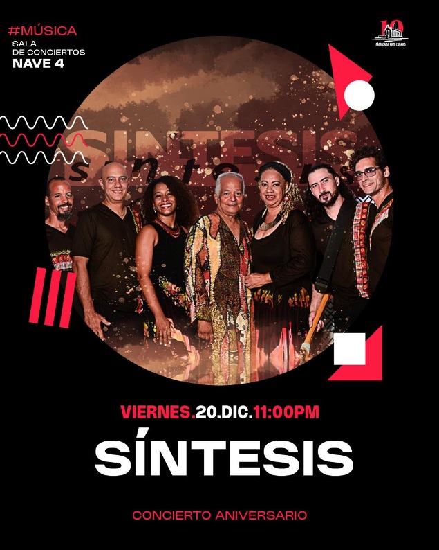 Síntesis ofrecerá el «Concierto de aniversario», programado para mañana viernes. Encabezado por Carlos Alfonso, el estilo único que define a este grupo, combina su repertorio paralelamente entre canciones con textos en español, con elementos de la extraordinaria fusión de los ritmos de la música cubana, con sonoridades universales; y la propia elaboración de los cantos de origen afrocubanos interpretados en su lengua original.