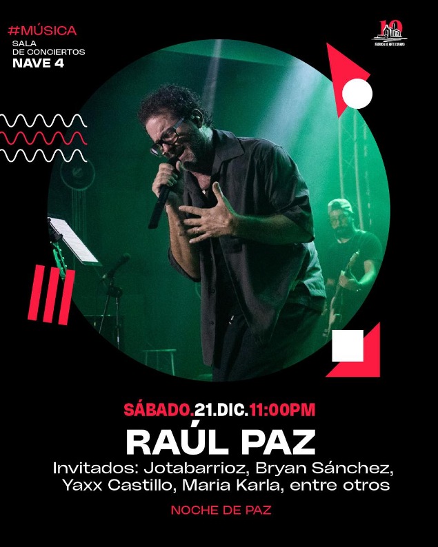 El sábado será celebrado el evento Noche de paz, con el cantante e intérprete Raúl Paz, una figura destacada de la música cubana, que fusiona elementos del tecnopop, rock, trova, pop y fusión. Ha compartido escenarios con prominentes artistas de renombre internacional y su éxito ha sido reconocido con diversos premios.