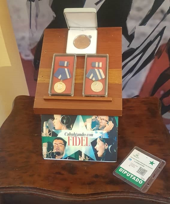 Entre las piezas que engrosan para la posteridad los fondos de la entidad patrimonial se encuentran sus medallas Alejo Carpentier, otorgada por el Consejo de Estado, y distinciones entregadas por el Ministerio de Cultura; su acreditación como Diputado a la Asamblea Nacional del Poder Popular en la X Legislatura, así como su tradicional guayabera, prenda que se exhibirá junto a la de otros grandes de la canción trovadoresca cubana como Sindo Garay (1867-1968) y Silvio Rodríguez.