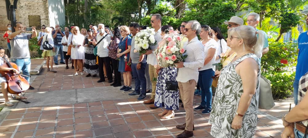 Liderados por Perla Rosales, directora general adjunta de la OHCH, trabajadores y directivos de la institución -acompañados por Javier Leal, hijo del Historiador, y otros familiares- llegaron hasta el Jardín Madre Teresa de Calcuta para recordar a Leal, quien tenía el don de emplear siempre las palabras adecuadas y al que no le importó nunca los esfuerzos personales: su estirpe, su pensamiento y voluntad estaban más allá de lo individual.