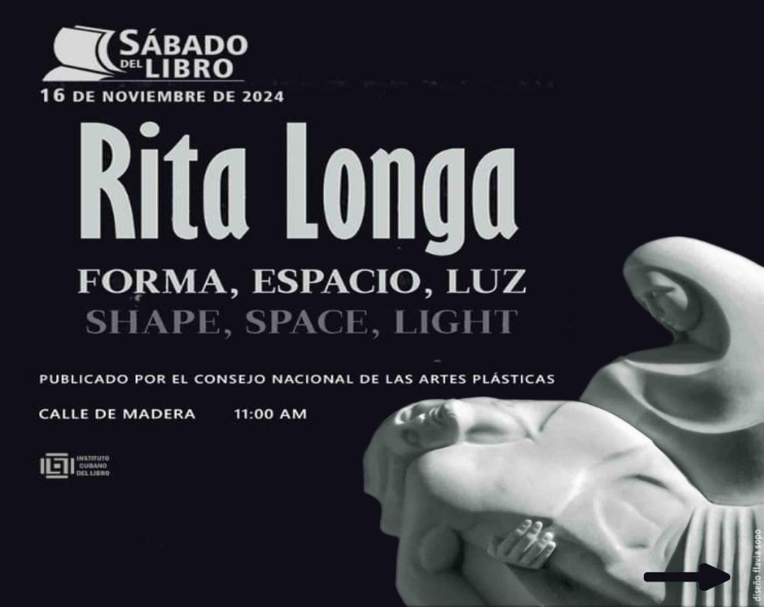 El tradicional espacio Sábado del Libro, que convoca el Instituto Cubano del Libro, estará dedicado este 16 de noviembre a la 15ª Bienal de La Habana y al Aniversario 505 de la Villa de San Cristóbal de La Habana, con la presentación del título Rita Longa, forma, espacio y luz.