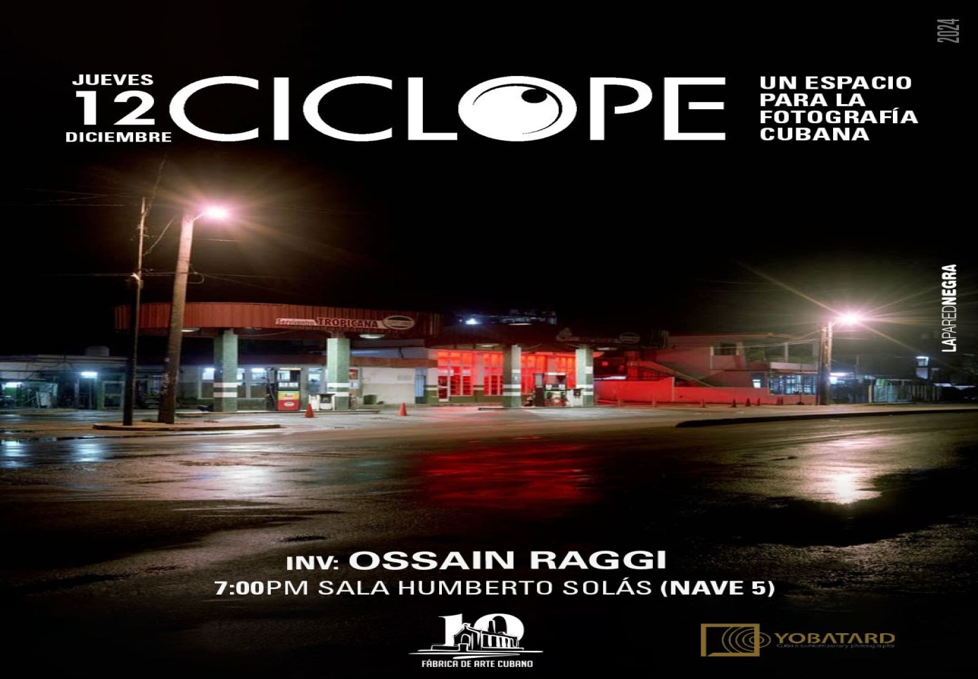 Este jueves el espacio Cíclope, dedicado a la fotografía, tendrá como invitado a Ossain Raggi, quien dialogará sobre la serie Cuba en la noche. Todos los lugares representados son puntos de encuentro para el pueblo cubano. Algunos son pequeños negocios, conocidos cruces de caminos, plazas, o simplemente lugares con buena iluminación.
