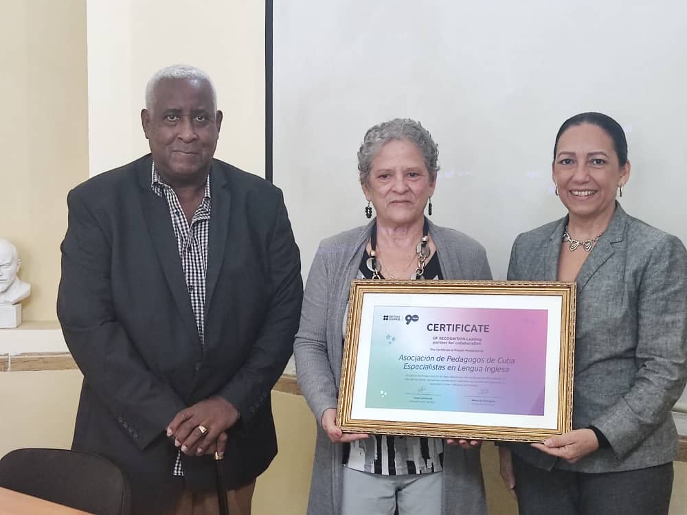 Un momento emotivo fue la entrega de reconocimientos que comenzó con la entrega de Diploma a APCELI de manos de Yailet Landrove, directora de proyectos de esta organización en Cuba, por el aniversario 90 del British Council, así como los certificados a los profesores Miguel de Armas, de Villa Clara y Ramón Octavio Polanco de La Habana, por su larga trayectoria como docentes y su contribución a la enseñanza de esta lengua, según informó para este espacio el profesor Juan Carlos Domínguez.