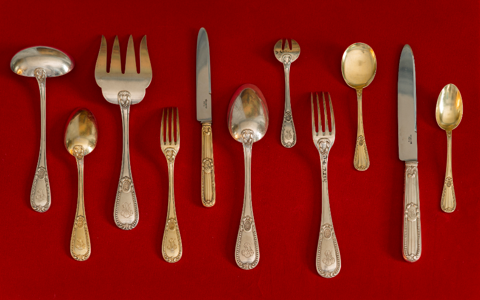 Una excelente vajilla de porcelana de la manufactura de Sévres, producida durante el período Napoleón III en el siglo XIX se exhibe, a la par se expone una selección de la gran cubertería de plata, plata dorada y acero inoxidable la cual en múltiples de sus piezas presenta de forma muy estilizada las letras “J” y “M” entrelazadas entre sí. De la colección Bances-Martí también se presentan abanicos, mantones de manila y peinetas de carey. Todas las piezas previamente mencionadas forman parte hoy de la colección del Museo Nacional de Artes Decorativas.